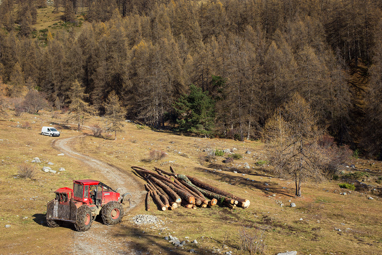 A la lisière du parc des Ecrins, de grandes étendues forestières, surplombant le lac de Serre-Ponçon, traversées par le GR 50 touristique. En retournant sur ces lieux pour découvrir l’avancée des travaux lancés par le RTE (réseau de transport d’électricité), j’ai perdu mes repères : béances, arbres fauchés, pistes défoncées sans ordre apparent, tranchées jonchées de débris végétaux…